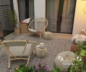 To etap domykający cały projekt. Obejmuje on opracowanie ogrodu zewnętrznego (30 m²) w spójności z energią i funkcją domu. Projektuję: